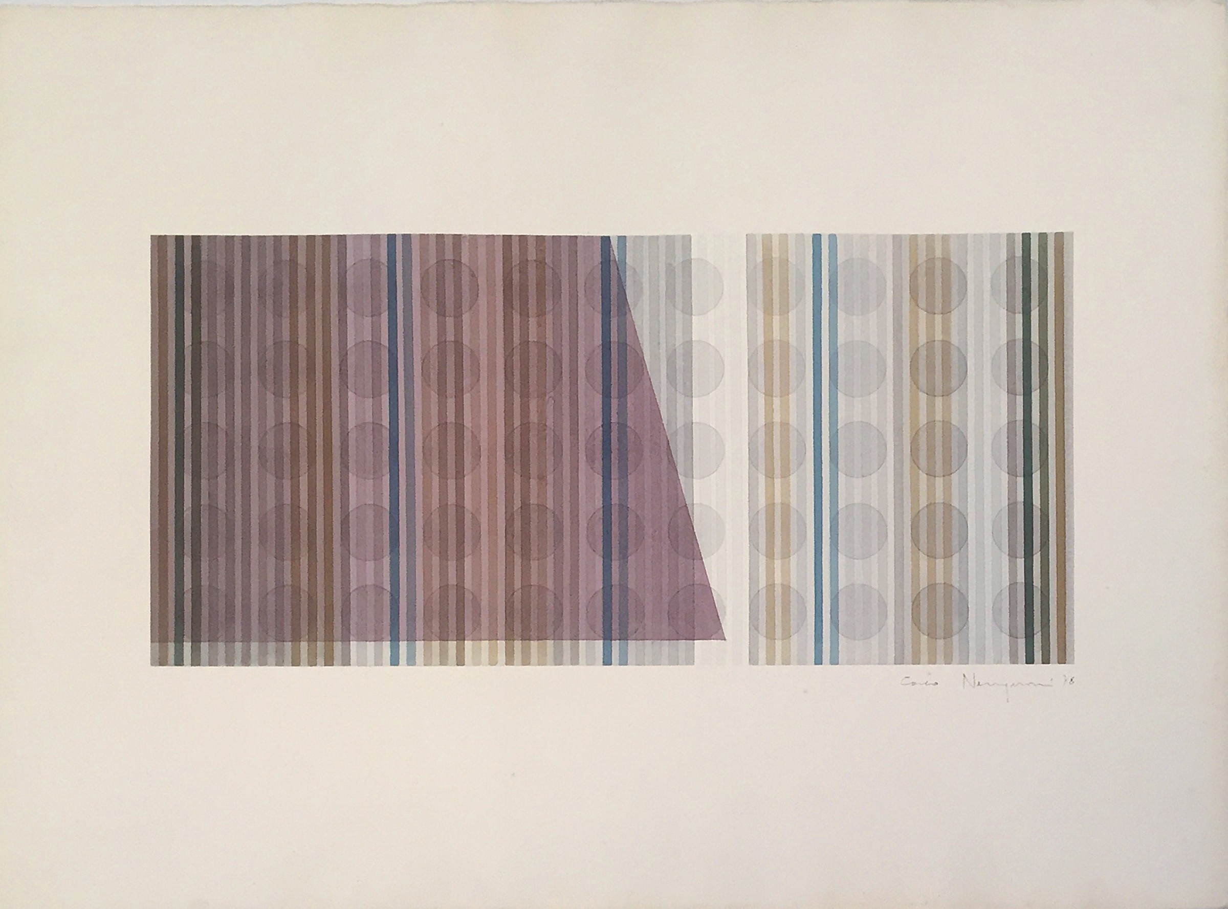 Nel 1949 allestisce la sua prima esposizione personale alla “New York circulating gallery of paintings”. Dopo questo esordio si allontana dalle esposizioni fino al 1957 per dedicarsi a varie esperienze nel campo dell’astrattismo geometrico. Dal 1954 al 1957 lavora ad una serie di opere quasi monocrome (bianco con piccole aggiunte di colore) a forte “texture” e lieve rilievo, dove ricordi figurali si mescolano a partiture inoggettive. Il suo lavoro è basato sulla ricerca della variazione nel declinare la figura del tondo, forma che dispone rigorosamente su una trama immaginaria, associandogli spesso strisce colorate verticali. L’uso dell’acquerello gli permette di ottenere varie gradazioni e soprattutto una gamma cromatica dolce di grigi, blu, gialli, rosa che rompe il rigore della composizione. Inoltre gioca con la geometria creando zone bianche, che si miscelano armoniosamente alla struttura dell’insieme sotto le quali le forme scompaiono per lasciare il posto ad uno spazio silenzioso.